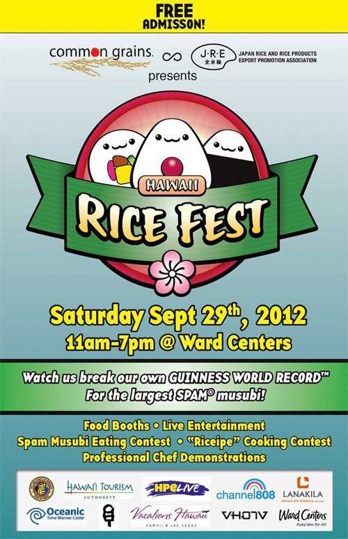 The event will be held at Ward Centers, and will probably be packed out. The best thing about this event? It’s FREE! Bring your appetite and enthusiasm and get ready to celebrate the biggest food product in Hawaii, and the rest of the world… Rice!