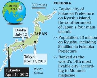 About 13 million people live on Kyushu, with 5 million of those in Fukuoka Prefecture.