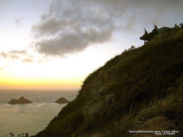 In the tranquil community of Lanikai lies a hiking trail hidden among a private golf course and the beautiful multi-million dollar homes called Ka’iwa Ridge, or otherwise known as the Lanikai Pillboxes. Although a little steep on the way up, even the most novice of hikers can make the approximately 0.7 mile hike to what are called the Pillboxes.