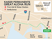 The course consists of an 8.15-mile relatively flat course that starts at Aloha Tower in Downtown Honolulu. From there it winds its way along the historic Honolulu Harbor, down Nimitz Highway, Kamehameha Highway and into the Aloha Stadium.