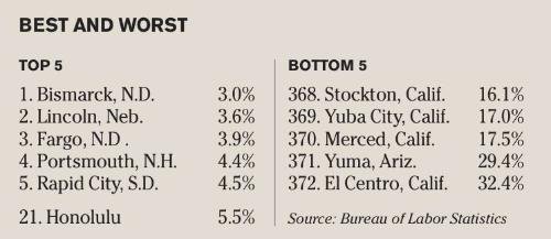Honolulu was one of 103 metropolitan areas where the unemployment rate rose in August from July. The jobless rate fell in 237 metro areas and was unchanged in 32.
